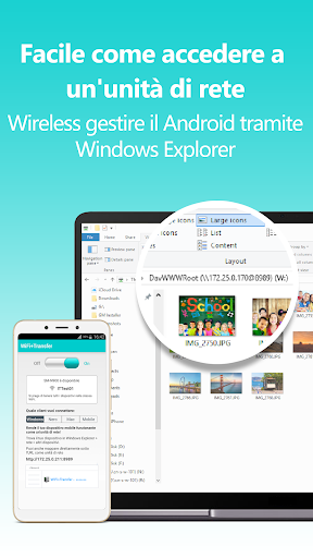 Trasferisci in modalità wireless il tuo contenuto mobile tra PC, Mac OS, nessuna configurazione complessa, nessuna applicazione aggiuntiva necessaria.