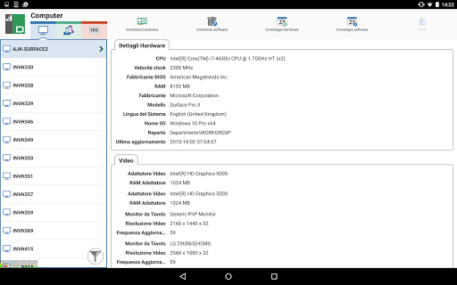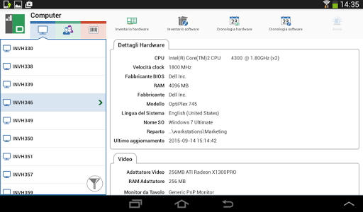 L’app per dispositivi mobili DNA permette ai tecnici che si sono allontanati dalla loro scrivania di cercare e visualizzare un inventario dettagliato dell’Hardware e Software per qualsiasi PC della rete aziendale. L’app per dispositivi mobili incorpora uno scanner di codici a matrice per identificare immediatamente qualsiasi PC, sia tramite un codice a matrice visualizzato su schermo da DNA, sia tramite un'etichetta apposta al dispositivo. NetSupport DNA permette inoltre di creare etichette con codici a matrice, che possono includere dettagli personalizzati. L’app permette inoltre di visualizzare una cronologia delle modifiche apportate all’hardware, come pure tutte le installazioni/rimozioni di software.
