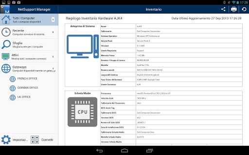 Generate, su richiesta, un rapporto completo dell’inventario hardware di un dispositivo remoto.