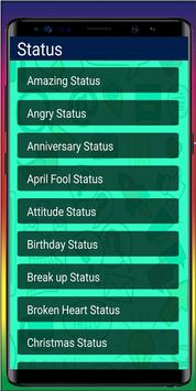 All statuses are divided into multiple categories like Funny status, Love status, New Year status, Sad status, Nice status, Man status, Woman status, Clever status, Life status, Joke status.