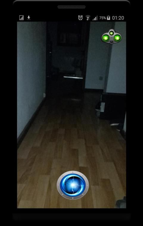 Push the button in the top right corner to enable the Thermal Vision Filter to see in the Night. Touch the Flashlight Button to turn on the Flashlight. Never let your display flash your eyes with Augmented Torch which lets you look through your display with the Camera View.