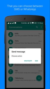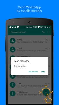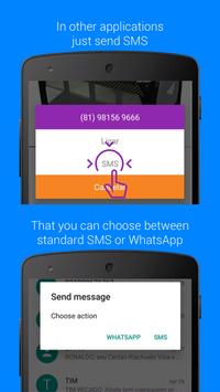 Also, every time you need to send an SMS it will allow you to choose between standard SMS or WhatsApp. This way, it allows you to send WhatsApp from other applications.