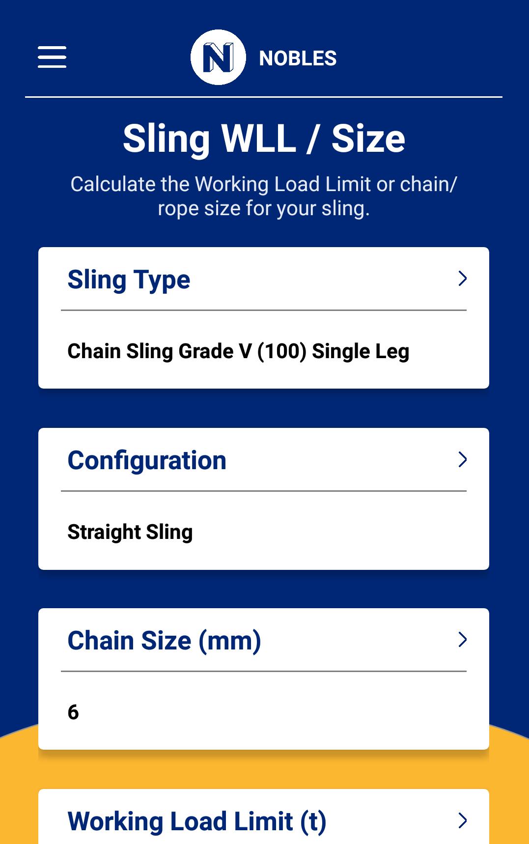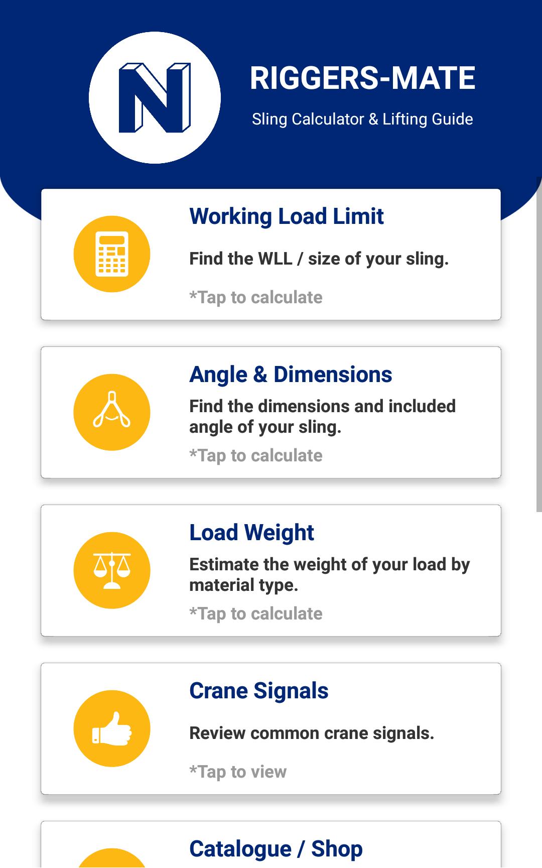 equipment and advice. This App calculates the WLL, angle and/or size/dimensions as well as the