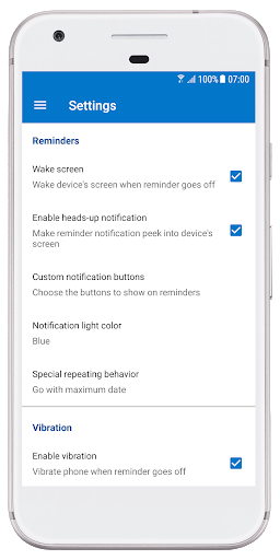 : Notification color, vibration pattern, notification buttons, snooze length, and many more settings to make Notebox fit you best.