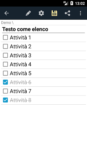 Il testo della nota può essere trasformato in un elenco con la possibilità di contrassegnare le linee con segni di spunta.