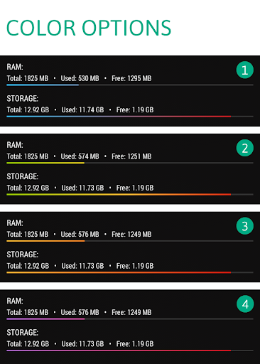 Two configurable storage information panels (eg: internal storage and SD card)
