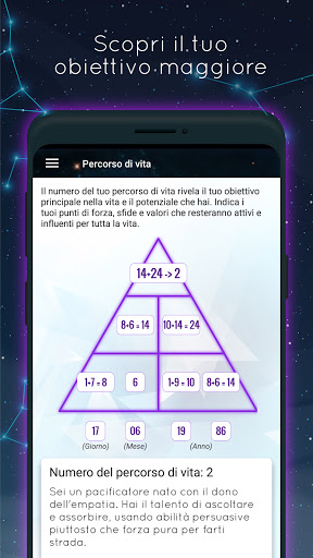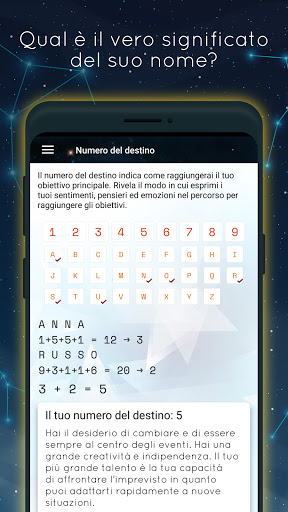 L'universo è un sistema che può essere scomposto nei suoi elementi più elementari: i numeri. Lo stesso vale per i tuoi numeri personali: impronte digitali nascoste di chi sei veramente. Numeroscopo utilizza le leggi della matematica e della numerologia esoterica per decifrare i segreti della tua data di nascita e del tuo nome.