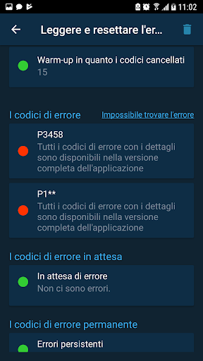- cercare le descrizioni dei codici di difficoltà e le possibili soluzioni in Internet facendo clic sul codice;