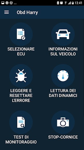 È possibile effettuare scansioni e diagnostica utilizzando l'applicazione Obd Harry Scan e Bluetooth / Wi-Fi ELM327.