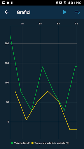 - possibilità di selezionare fino a 5 parametri grafici e grafici senza limiti di tempo;