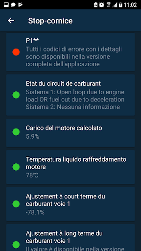 - è disponibile più di 70 parametri, supportato dallo standard OBD-II del tuo veicolo la possibilità di visualizzare fino a 10 parametri di dati in tempo reale;