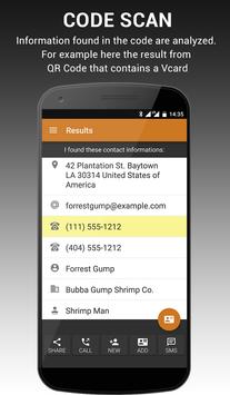 Allo stesso modo della funzione di lettura dei codici a barre, ogni tipo d'informazione, una volta selezionata, ti permette di accedere a funzioni a essa dedicate. Per esempio, selezionando un numero di telefono puoi facilmente far partire una telefonata, scrivere un sms, o aggiornare un contatto esistente della tua rubrica.