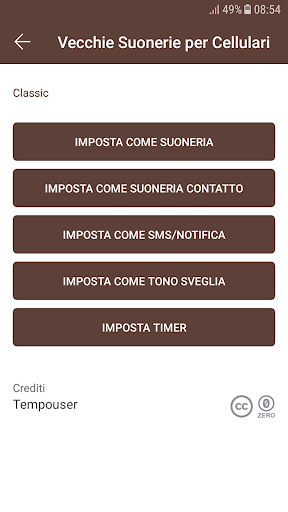 Tutti i suoni utilizzati in Vecchie Suonerie per Cellulari dell'applicazione sono sotto la licenza Creative Commons e / o di pubblico dominio. Per ulteriori informazioni sui suoni utilizzati in app, si prega di visitare la sezione Su App all'interno della stessa applicazione. Per eventuali domande o dubbi riguardanti la licenza, contattaci all'indirizzo coolringtonesapps@gmail.com.