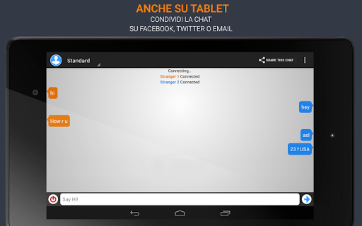 Chatta anonima senza registrazione con sconosciuti, manda e ricevi foto e molto altro. AnonyChat è una applicazione semplice ma ricca di features per il tuo smartphone .