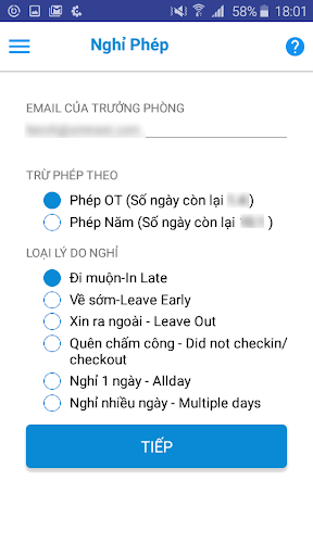 - Nộp đơn xin nghỉ phép cho cấp trên phê duyệt, tra cứu số ngày phép còn lại.