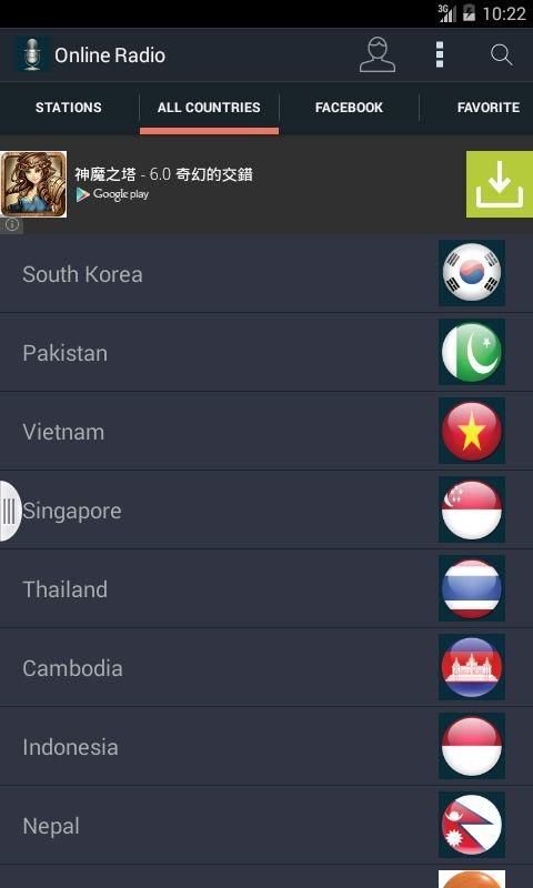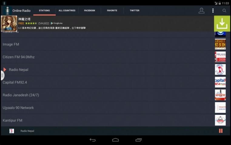 This app serves a variety of unique services of Internet and mobile Radio streaming. It puts forward interesting bundle of streaming Radio stations which includes: Nepali Radio, Malaysia Radio, India Radio, Indonesia Radio, Cambodia Radio, Thailand Radio, Singapore Radio, Vietnam Radio, Pakistan Radio, South Korea Radio and much more. Features: • All the services are free • Streams have been updated everyday • No need to have “Adobe Flash Player” • No sign-up required • Updating channels automaticaly • We are adding new channels time to time, keep updated • Easy to use interface • View on any network - Wi-Fi and 3G • You can listen Radio using android mobile phone or tablet. • No need to use satellites • Just use your android device • This application only provides the links for the live streaming radio • All the links are gathered from various freely available web sites DMCA Notice: This app does not own or host any content. It simply aggregates links in a convenient, user-friendly interface. Please email any questions or concerns to developers before sending to Google. We will be more than happy to comply with any DMCA requests.
