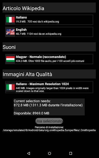 - Articoli di Wikipedia per tutti gli uccelli ( 3-50MB ognuno, a seconda della lingua selezionata)