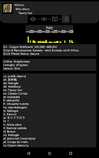 L’App viene fornita con oltre 3200 immagini, 29000 file audio e 2500 file video Youtube e tanto altro. È inoltre possibile includere facilmente i propri contenuti (immagini o suoni). Altre funzionalità sono la ricerca per caratteristiche di un uccello e un Ornitho-Trainer per allenarsi a riconoscere i principali tratti distintivi degli uccelli più comuni. La possibilità di creare e mantenere liste personalizzate è attualmente in fase di test.