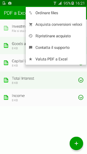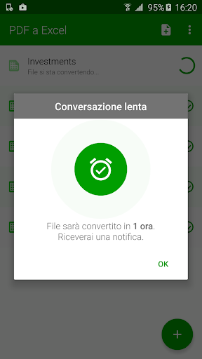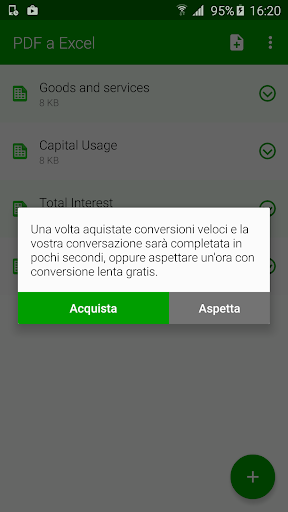 Il convertitore PDF a Excel più alogiato sul mercato. Riutilizzare e modificare i documenti PDF. Convertitore PDF a Excel consente agli utenti di trasformare i loro testi moduli e tabelle in formato PDF in documenti Microsoft Excel modificabili. Fare clic sul pulsante per aggiungere un file per la conversione. File viene poi inviato automaticamente ai nostri server per la conversione. Il file viene scaricato una volta che la conversione è fatta. PDF a Excel conversione non viene eseguita sul dispositivo quindi PDF a Excel convertitore non scarica le risorse del dispositivo o la batteria