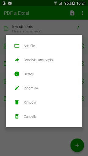 - PDF a Excel documento convertito è in formato .xlsx e subito pronto per un ulteriore riutilizzo.