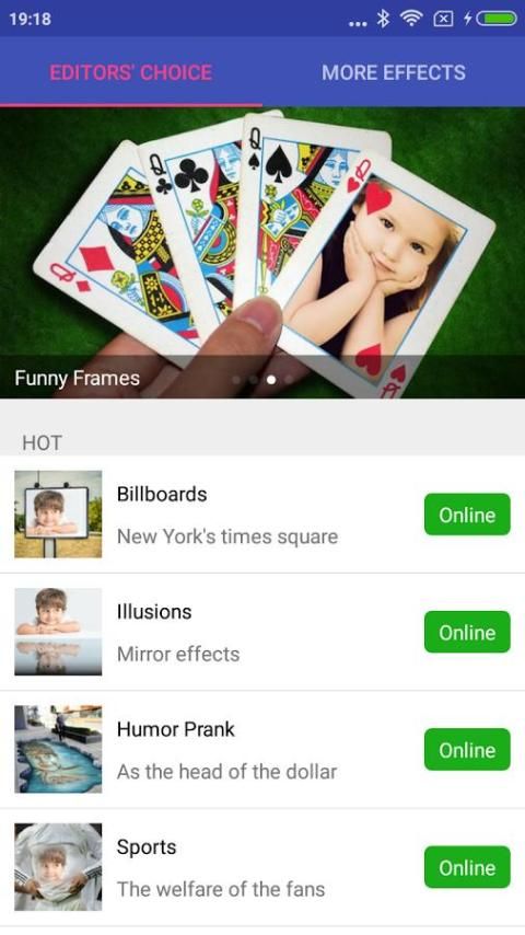 A lot of special effects, Billboard, Theatre, Funny, Amazing, Drawing & Sketch, Bus, Humor Prank, Holiday Card, Magazine, and more... A myriad of hundreds of effects is waiting for you.