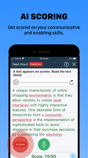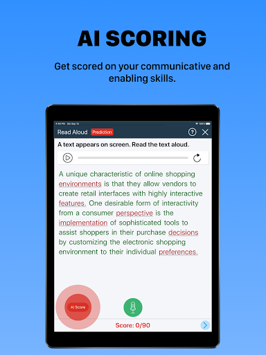• Ottieni feedback istantanei e punteggio stimato per il tuo parlare.