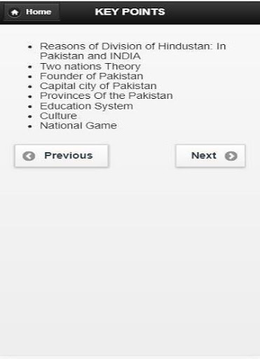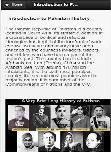 Pakistan History is an educational app for Pakistan studies students. Pakistan History is an educational app for students. Its provide basic education about Pakistan History.. this app very help full for History students.