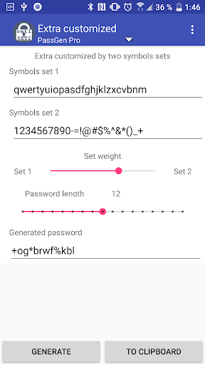 All modes are customized, you can set password length, using of uppercase symbols, etc.