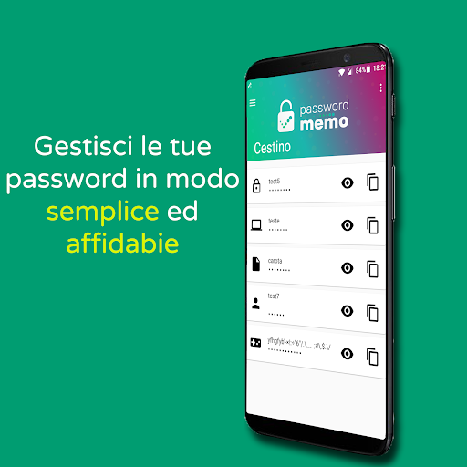 😉 Memorizza ogni tipo di password (es. Account, Telefono ecc...);