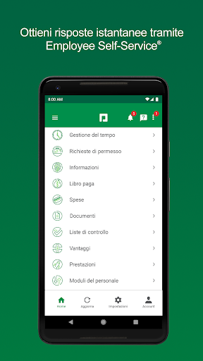 Espressamente pensato per i dipendenti che già utilizzano la tecnologia HR di Paycom al lavoro, l’app Paycom trasferisce la potenza della nostra tecnologia Employee Self-Service al tuo dispositivo mobile.