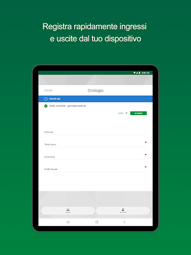 Timbri usando il nostro orologio basato sul web o registri i tuoi orari usando il nostro foglio presenze basato sul web? Ora puoi fare entrambe le cose tramite l’app. Puoi anche inviare i tuoi orari per l’approvazione, controllare i tuoi ratei e richiedere permessi per ferie, appuntamenti medici e altri eventi che richiedono l’approvazione del supervisore.