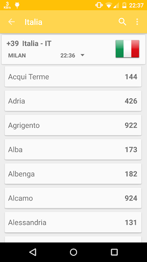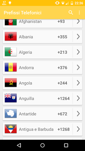 Telefono Codici del mondo vi offre i codici di telefono di tutti i paesi e regioni di tutto il mondo. L'applicazione vi permetterà di cercare i codici di telefono attraverso il nome del paese/regione, o paesi/regioni attraverso il codice. Si potrebbe condividere il codice del telefono o comporre direttamente.