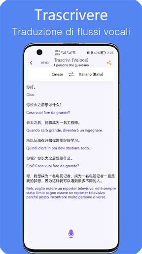 Quando si effettua una chiamata, non è necessario installare questa APP sul telefono cellulare della parte ricevente.Se l'utente rileva che la traduzione automatica non è sufficientemente accurata durante la telefonata, può anche chiamare un traduttore umano per aiutare in qualsiasi momento l'applicazione.