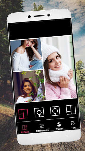• Quindi andare al college creando schermo. Qui puoi modificare il tuo layout del collage e aggiungere il numero di adesivi e sfondi, testo se vuoi.