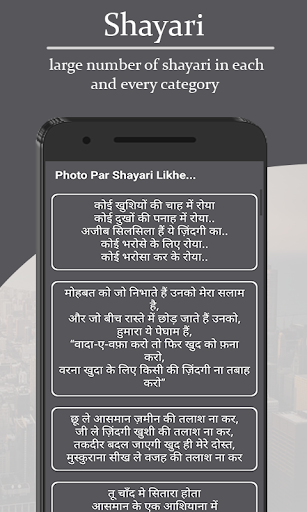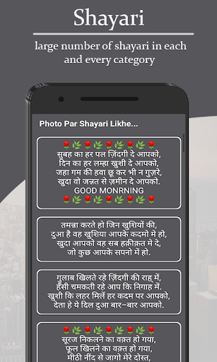 Applicazioni per Coloro che vogliono sempre mostrare l'amore di emozione tematico per qualcuno molto speciale da Shayari e Beautiful Hindi Quatation, questa app contiene un sacco di Shayari che aiutano quasi tutti a esprimerlo / il suo umore.