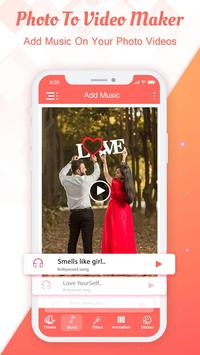 Photo to Video Maker with Music: Slideshow Maker app helps you to create fast and awesome slideshow with selected photos and music. For creating videos or slideshow from this application you can just select photos form gallery or captured photos from camera, add music track and select stunning animations.