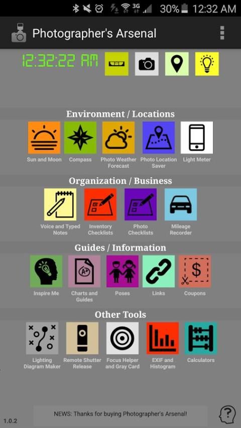 Photographer's Arsenal is the ultimate all-inclusive photography tools app for professional or hobbyist photographer on the go, with over 50 useful photo tools. Bring your photography to the next level!