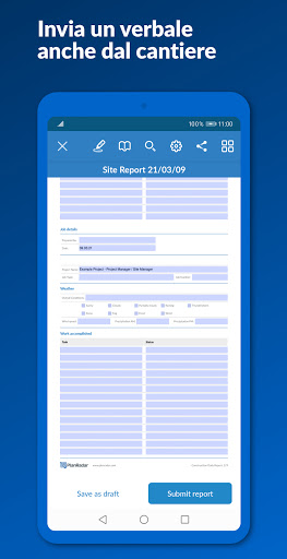 Crea report dettagliati e completamente personalizzabili in formato PDF o Excel ed esporta il registro di cantiere, l'elenco dettagliato dei difetti o un unico documento di consegna in pochi clic. Una reportistica efficiente evita di duplicare il lavoro in ufficio dopo aver completato le ispezioni in cantiere.