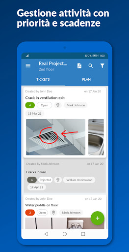 Con la nostra app di cantiere, le nuove attività e i difetti di costruzione possono essere individuati sulle planimetrie digitali o sui modelli BIM sotto forma di ticket. Questi possono essere inseriti con precisione millimetrica da tutti i partecipanti al progetto autorizzati ed essere integrati da foto, testi, messaggi vocali e documenti. È facile comunicare in modo chiaro ed evitare errori e malintesi.