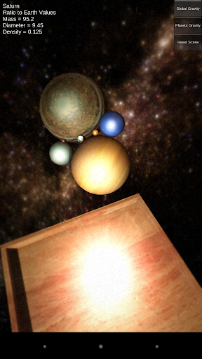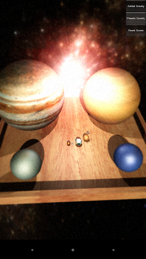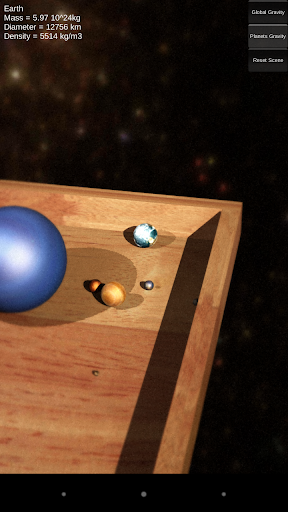 Applicazione dimostra le masse dei pianeti e le loro dimensioni rispetto alla Terra.I pianeti sono come sfere situati sul tavolo e l'utente può interagire con loro: