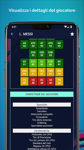 Il data base dell'applicazione è costantemente aggiornato con il gioco FIFA 19. Se vuoi seguire gli ultimi dati di gioco di FIFA 19, segui gli aggiornamenti della nostra applicazione.