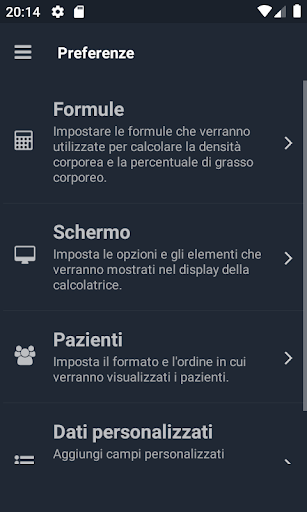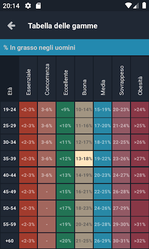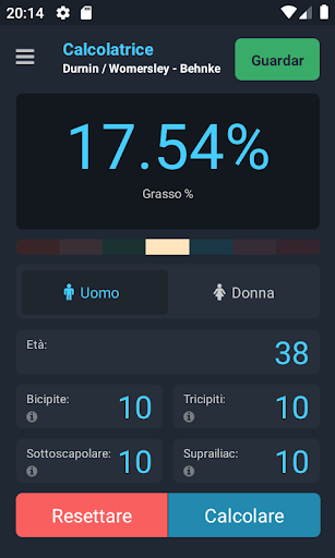 Con Plixi è possibile ottenere la percentuale di grasso corporeo usando la formula Durnin / Womersley per le persone con una percentuale di grassi superiore al 12% di uomini e 15% di donne oppure utilizzando la formula Jackson / Pollock per le persone con una percentuale di grassi inferiore al 12% di uomini e 15% donne.