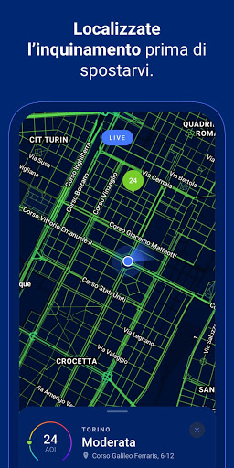 MAPPE DETTAGLIATE: mappe live sulla qualità dell'aria, strada per strada, forniscono informazioni dettagliate sui livelli di inquinamento in ogni strada, in tempo reale! Trova il percorso migliore per recarti al lavoro, scegli i parchi più puliti per incontrarsi per giocare: è tutto lì in una mappa straordinaria e di facile lettura.