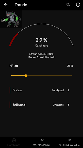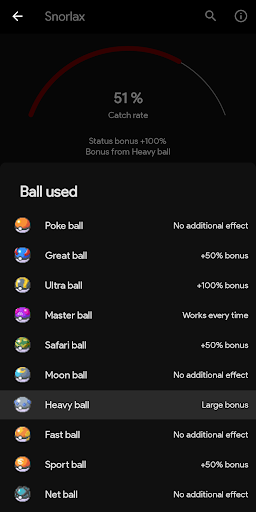 Don't waste your Poké Balls anymore ! Enter your opponent's health points and status and find out the probability to catch him !