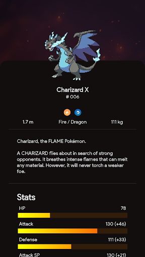 Get all information you need by simply swiping with your finger. Never miss critical data anymore ! Strengths, weaknesses, advanced statistics, short descriptions, abilities, learned moves ... everything is here !