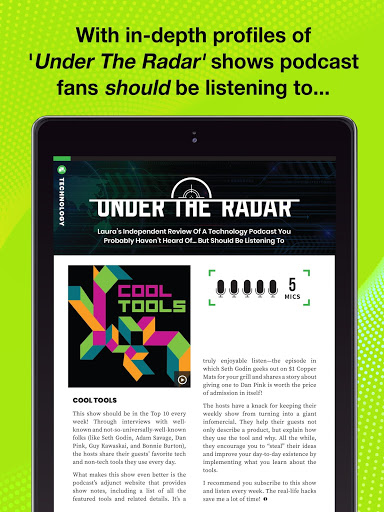 Podcast Magazine takes readers 'beyond the microphone' and into the lives of today's leading podcasters, behind the scenes of the shows fans love, covers products, tools, podcast platforms and industry happenings, offers multi-variate unbiased monthly categorical charts, independent ratings/reviews of 'under the radar' shows, and offers growth, traffic and monetization strategies for Professional, and aspiring, Podcasters.