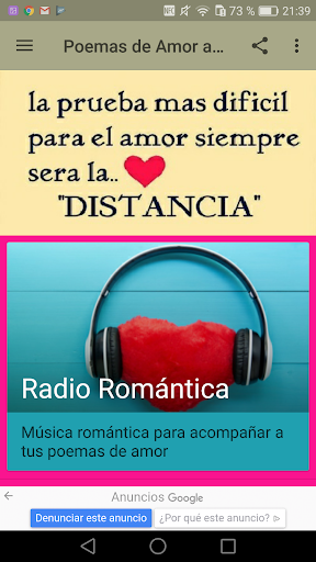 Descarga ya mismo esta App "Poemas de Amor a Distancia" y disfruta enviando fotos con Poemas de amor cortos, demuestra lo enamorad@ que estás, la persona a la que va dirigido sabrá valorar estos Poemas de Amor y sentimientos a la distancia.