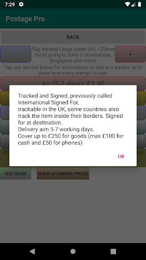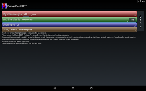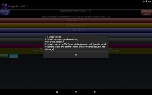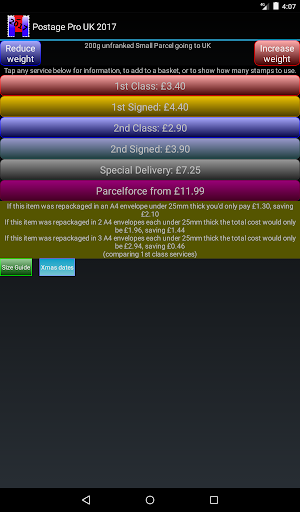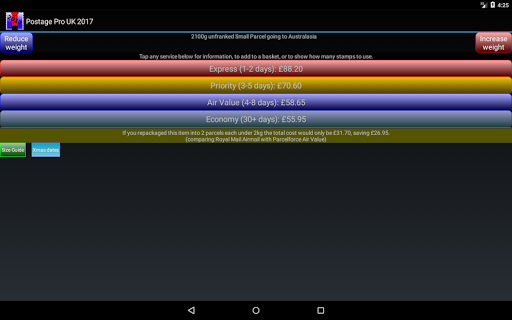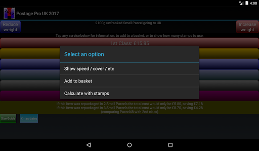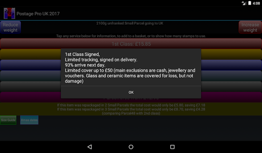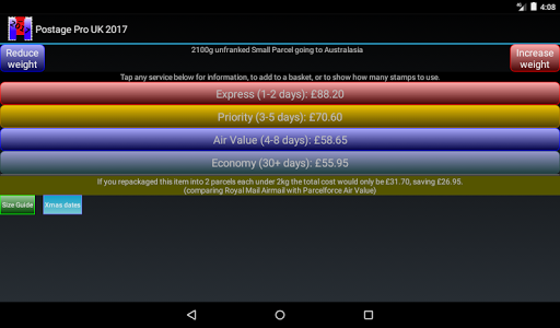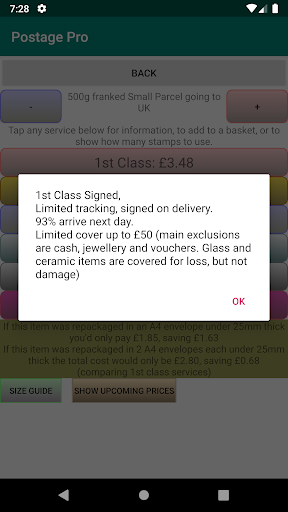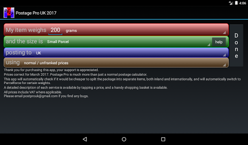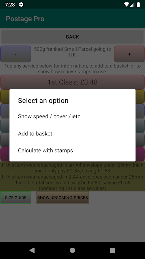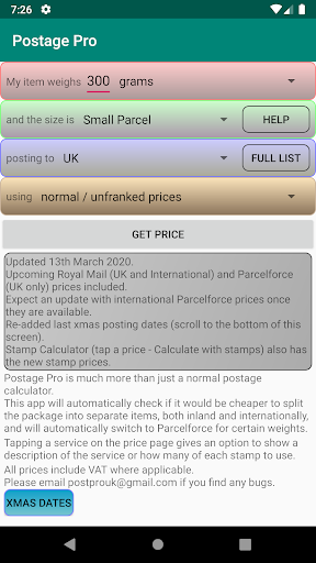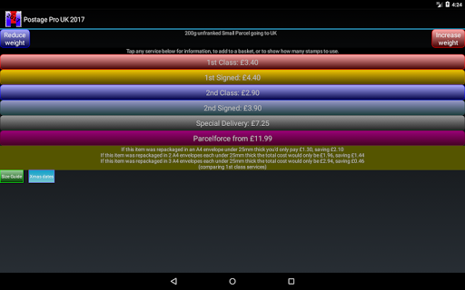 Tariffa di affrancature complete per lettere, lettere di grandi dimensioni , piccoli pacchi e pacchetti che vanno nel Regno Unito e all'estero. Risparmia denaro con un controllo avanzato per vedere se il tuo articolo potrebbe essere inviato più economico (vedi screenshot per i dettagli).