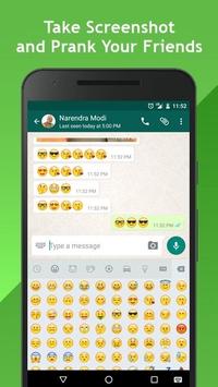 The application supports Fake Whats App screens with emojis, Images and custom background support