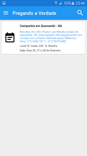 App con studi della Parola di Dio attraverso il pastore Luiz Mendes, predicando la verità che libera. - Una vasta lista di audii mp3, che puoi ascoltare direttamente dall'app (streaming); - una lista con tutte le chiese assistite dal pastore Luiz Mendes e i suoi indirizzi, solo un clic per il tuo cellulare per portarti in chiesa attraverso la tua applicazione GPS standard;